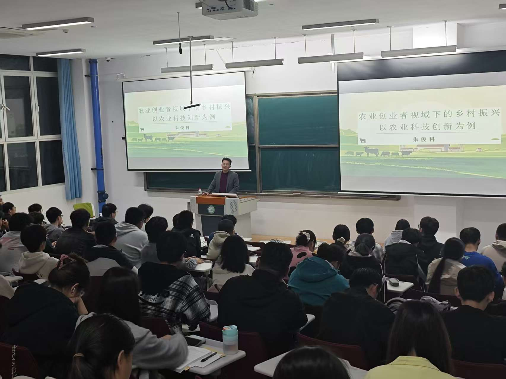 为深化师生对乡村振兴战略与农业科技创新的认知,助力农业领域人才培养与科研探索,10月15日,学校邀请淄博禾丰种业科技股份有限公司董事长兼总经理朱俊科教授作以“农业创业者视域下的乡村振兴—以农业科技创新为例”为题的学术报告,为师生分享了农业前沿动态与乡村发展实践。